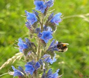Viper's-bugloss is a hairy plant with dense spikes of bright blue, funnel-shaped flowers. It is a species of flowering plant in the borage family Boraginaceae.