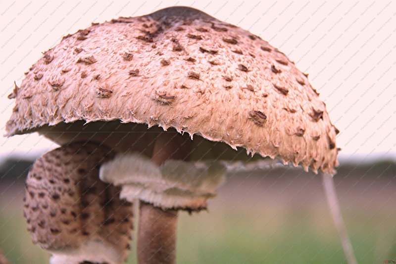 This scaly snakeskin appearance on the stem that helps in identifying it from a Shaggy Parasol which does not share this characteristic.