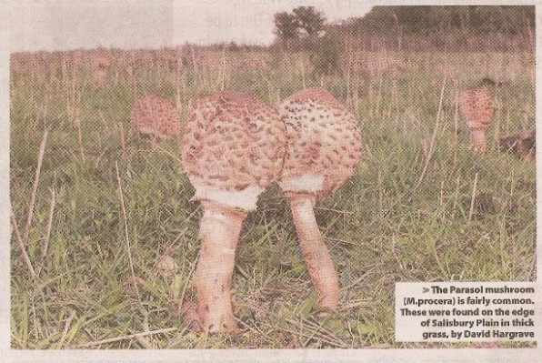 The Parasol mushroom (M.procera) is fairly common, these were found on the edge of Salisbury Plain in thick grass.