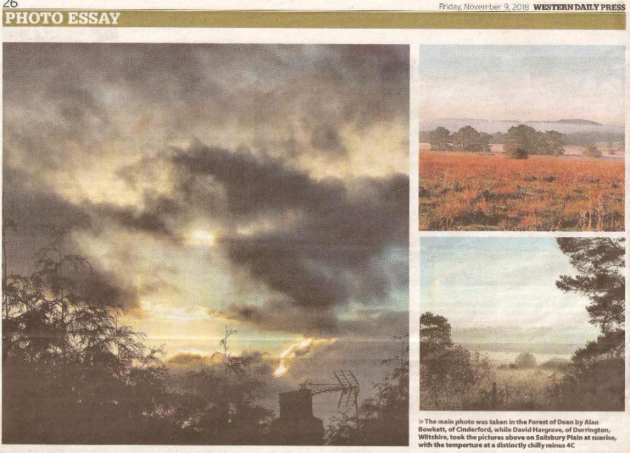 These photographs were taken at sunrise on the Fairmile, while out and about . The difference between minus 5 when I set out and minus 10 here is quite clear to be