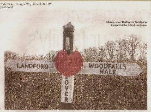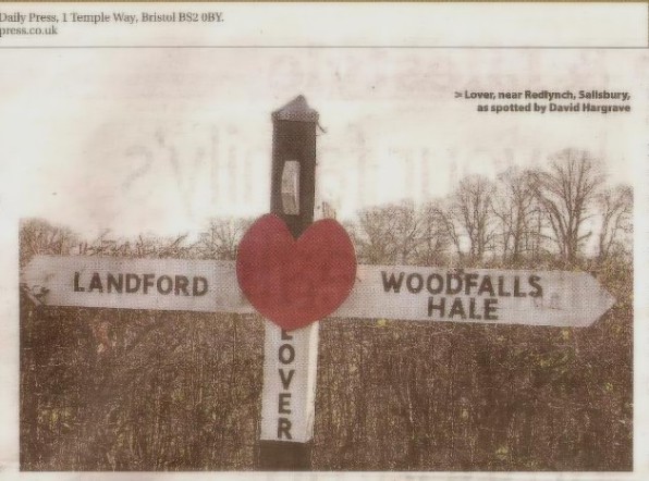 The settlement was once called Warminster Green, but by 1876 it was known as Lover, possibly a corruption of Lower Redlynch. Lover consists of three roads that