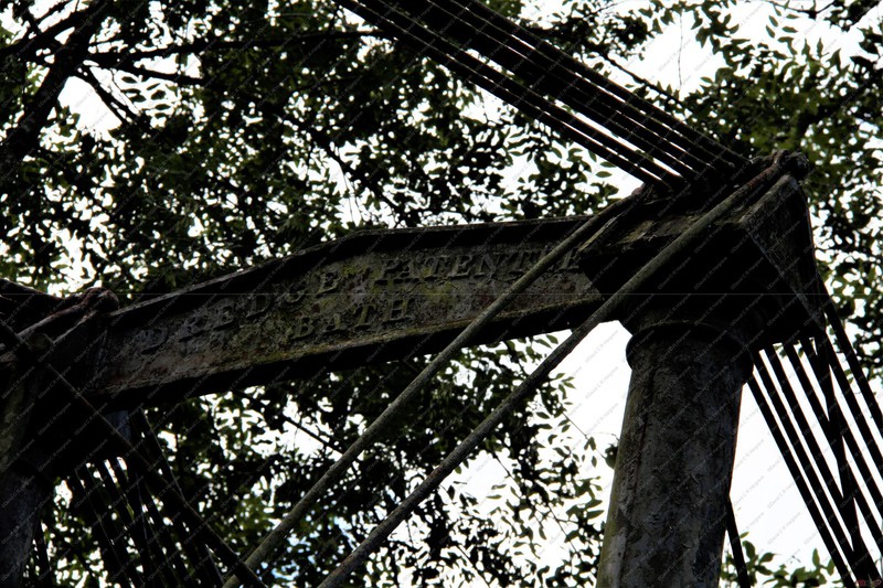 is similar to the Ness Islands Footbridges designed by James Dredge. The main deck beams are of rectangular section wrought iron bar, 4" deep and 1/2" thick. The transverse members, which are