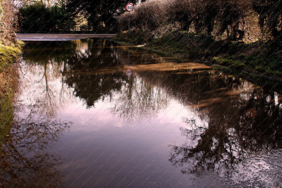 The chalk spring water is flooding roads in Netheravon. These photographs show a completely flooded road which becomes a small stream most winters.