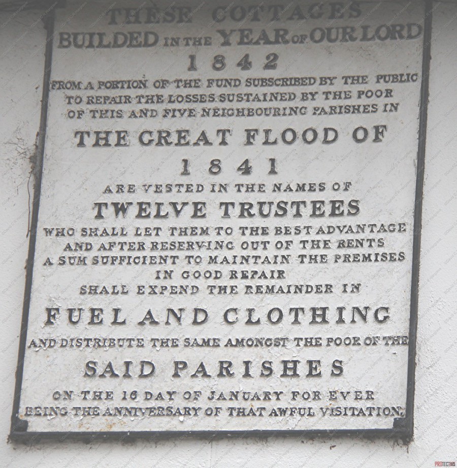 fourteen flood cottages in the area, and they can still be seen with their distinctive plaques on the wall.