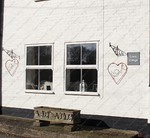 continuous integral lean-to to ground floor, first floor has two 2-light casements. Returns have wavy bargeboards to gables, no windows. A large cast-iron plaque on wall to centre of front first