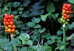 Cuckoo pint also known as Lords-and-ladies, is a shade-loving tuberous perennial, native to UK woodlands and hedgerows, which can often become established in gardens.