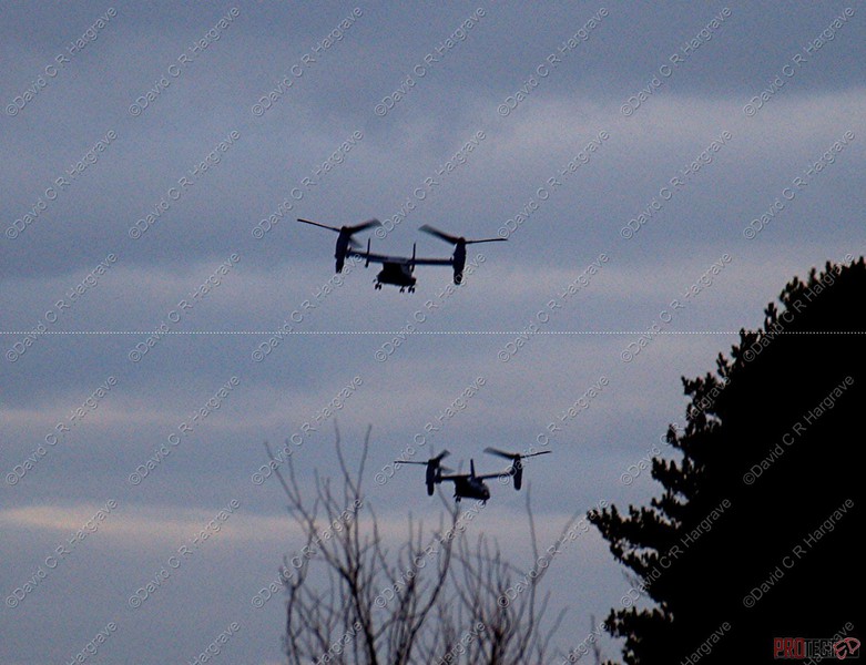 two CV-22 Osprey aircraft. They have been flying over Salisbury Plain, this week.