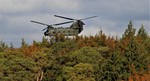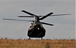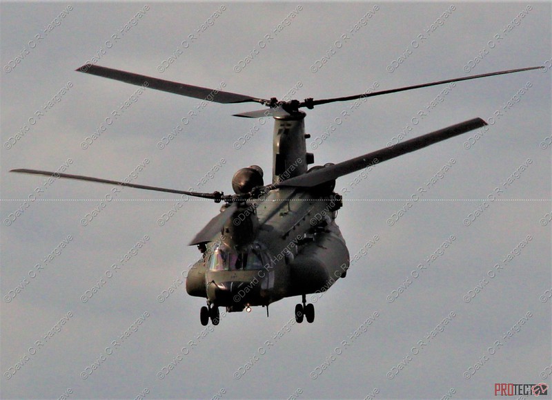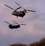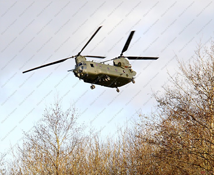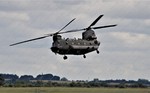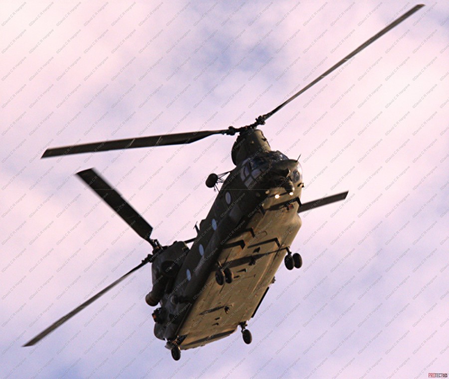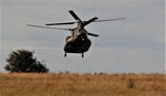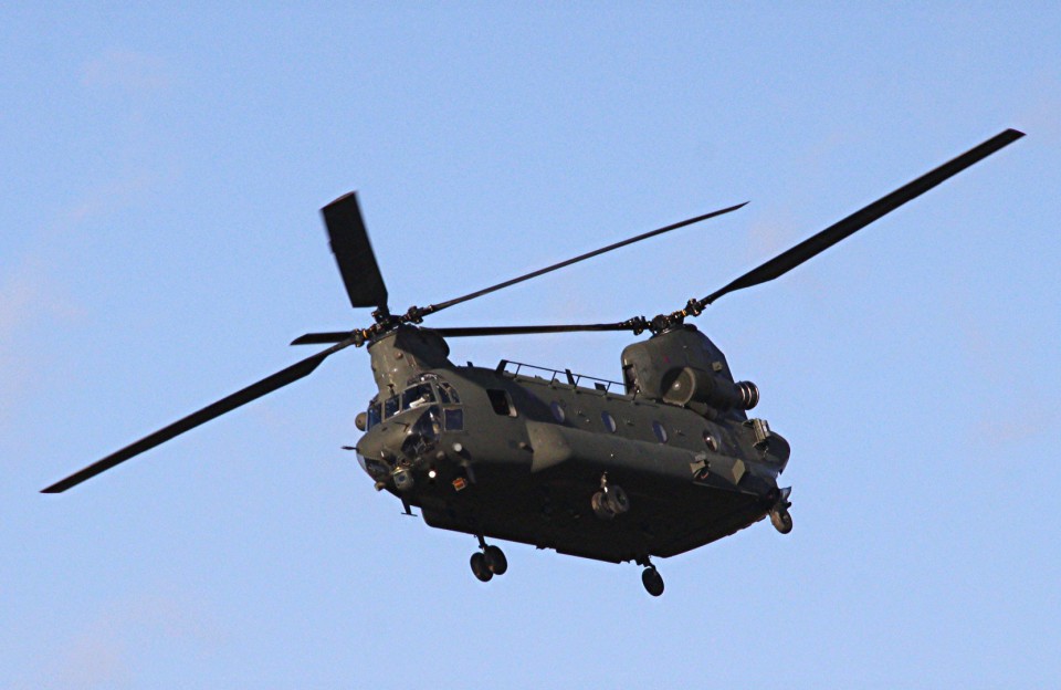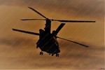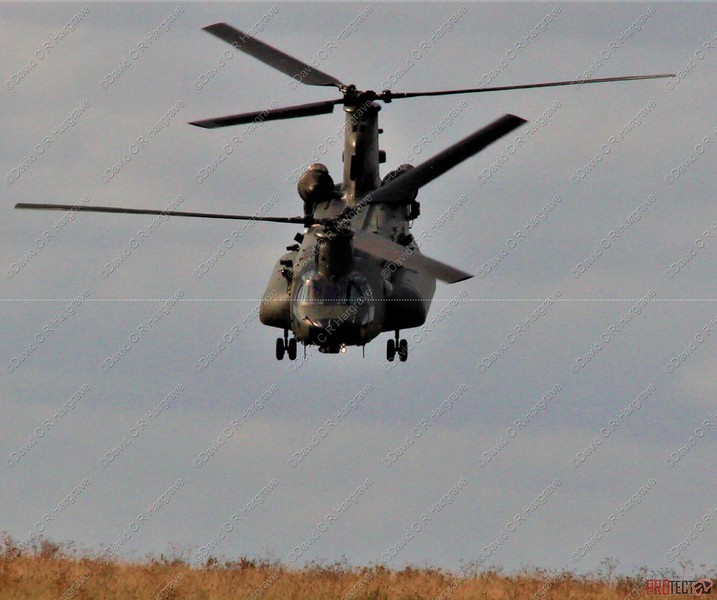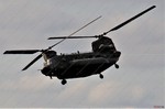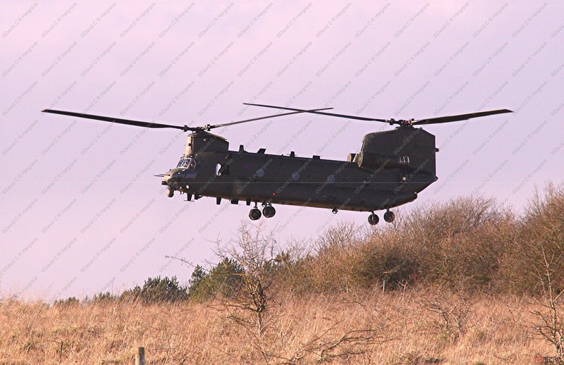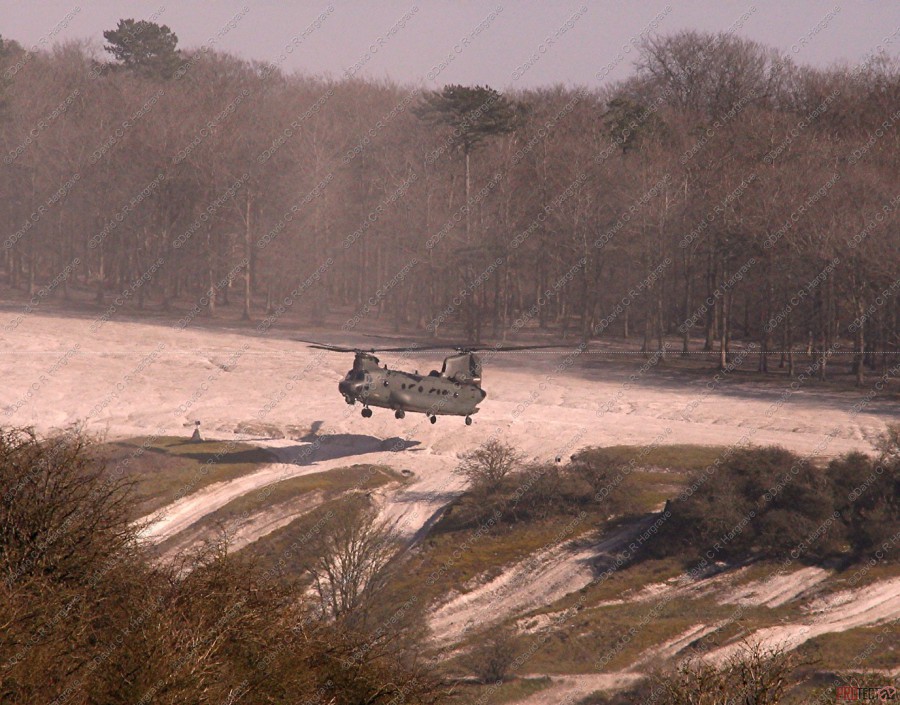 This photograph shows a Chinook on a training mission on Salisbury Plain.