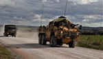 The Royal Artillery deploys on exercise this convoy, seen on the transit route.