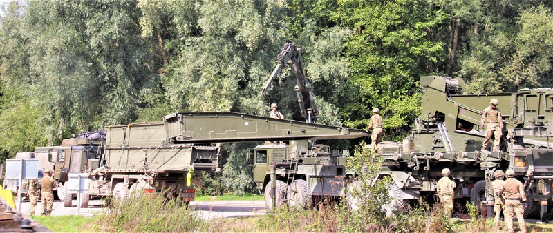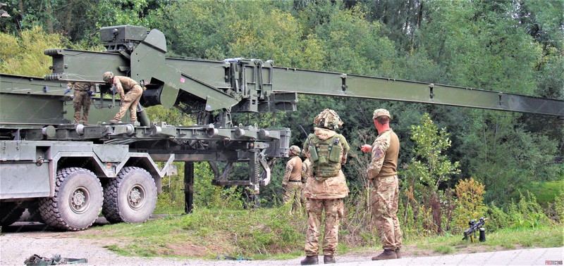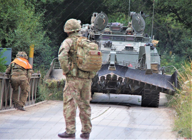 The exercise involved mine clearance with a Trojan armoured vehicle and bridge laying, using a Titan armoured vehicle.