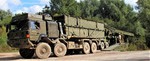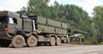 turbocharged diesel, developing 750 hp. Both vehicles were fitted with a 5-speed automatic transmissions. A fully loaded tank transporter has a maximum road speed of 85 km/h.