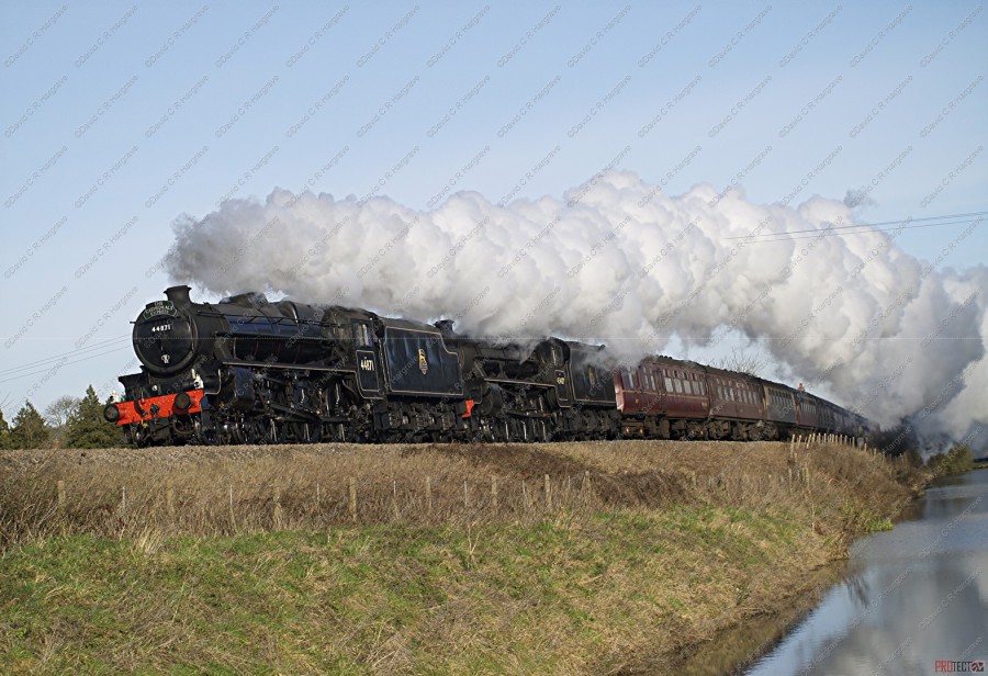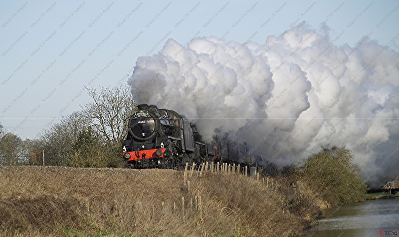 These photographs were taken today at Hurdcott Lodge Crossing between Salisbury and Yeovil with ex BR steam locomotive Stanier Black Five 44871 on route to The