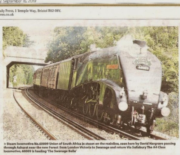 This was the Union of South Africa hauling the last Torbay Express of the 2019 season, seen here passing through Limpley Stoke.
