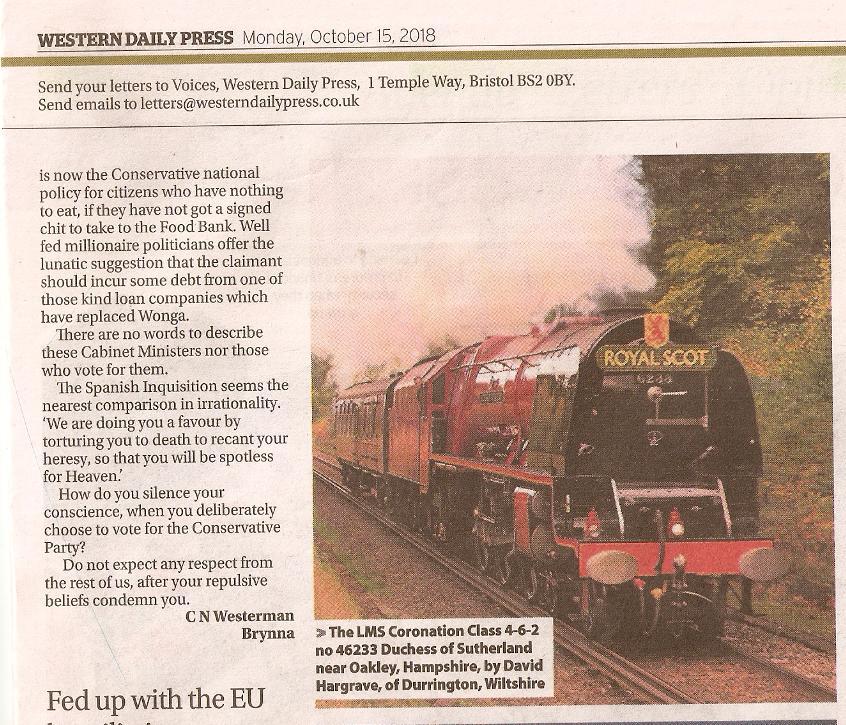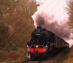 The engine was heading for the Swanage Railway as the Duchess of Sutherland is visiting the line for their Autumn Steam Gala. The engine was showing its newly painted Crimson Lake LMS colours.