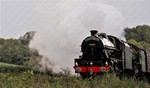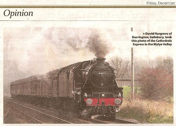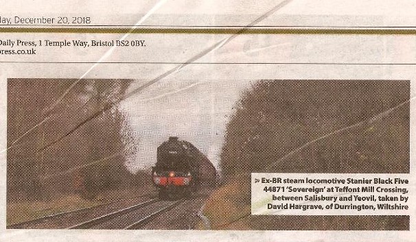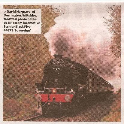 These photographs were taken this morning in the Wylye Valley, between Salisbury and Bath. BR steam locomotive Stanier Black Five 44871 'SOVEREIGN' was